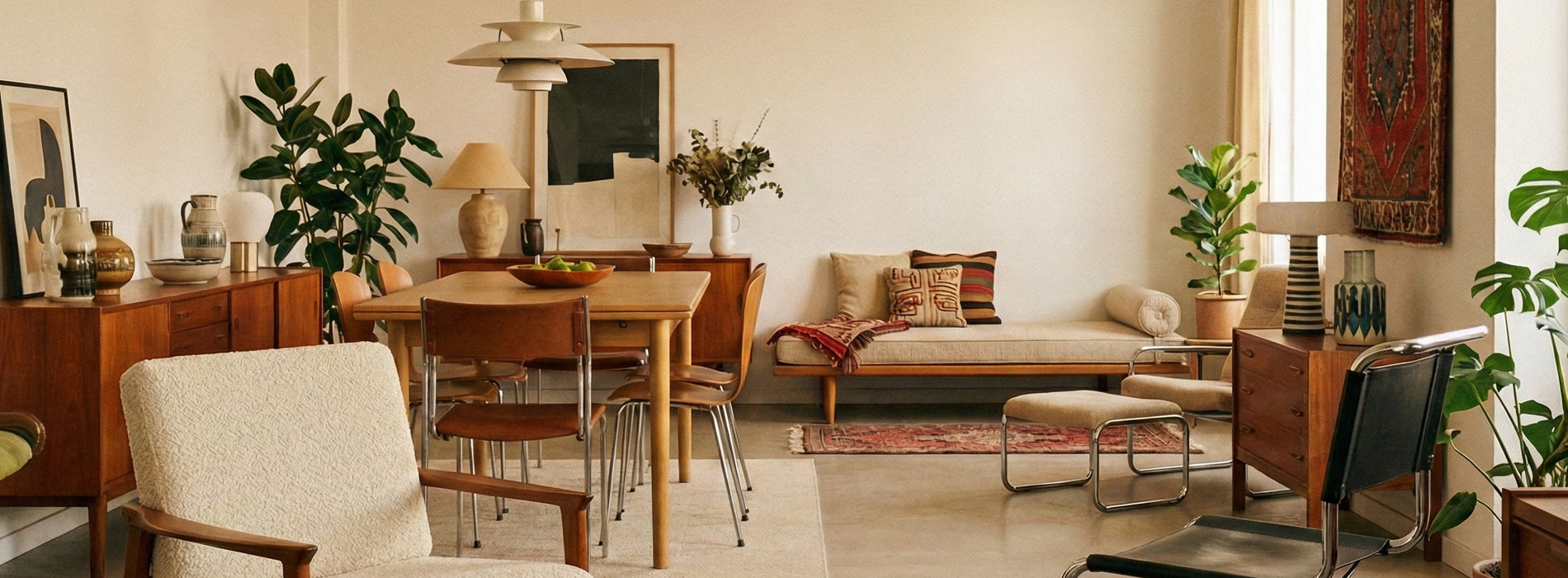 Discover a curated selection of vintage furniture and decor inspiration , designed to help you transform any space into an environment full of personality, design, and authenticity. Here we bring together real-life compositions and styling that combine mid-century furniture , Scandinavian pieces, 20th-century design icons, and decorative objects with a story.
