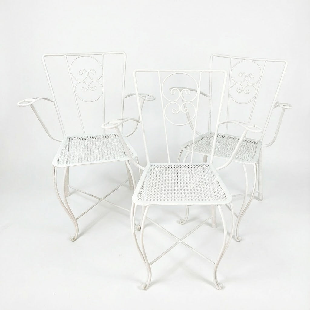 Pack of 3 wrought iron chairs painted white (expanded metal).