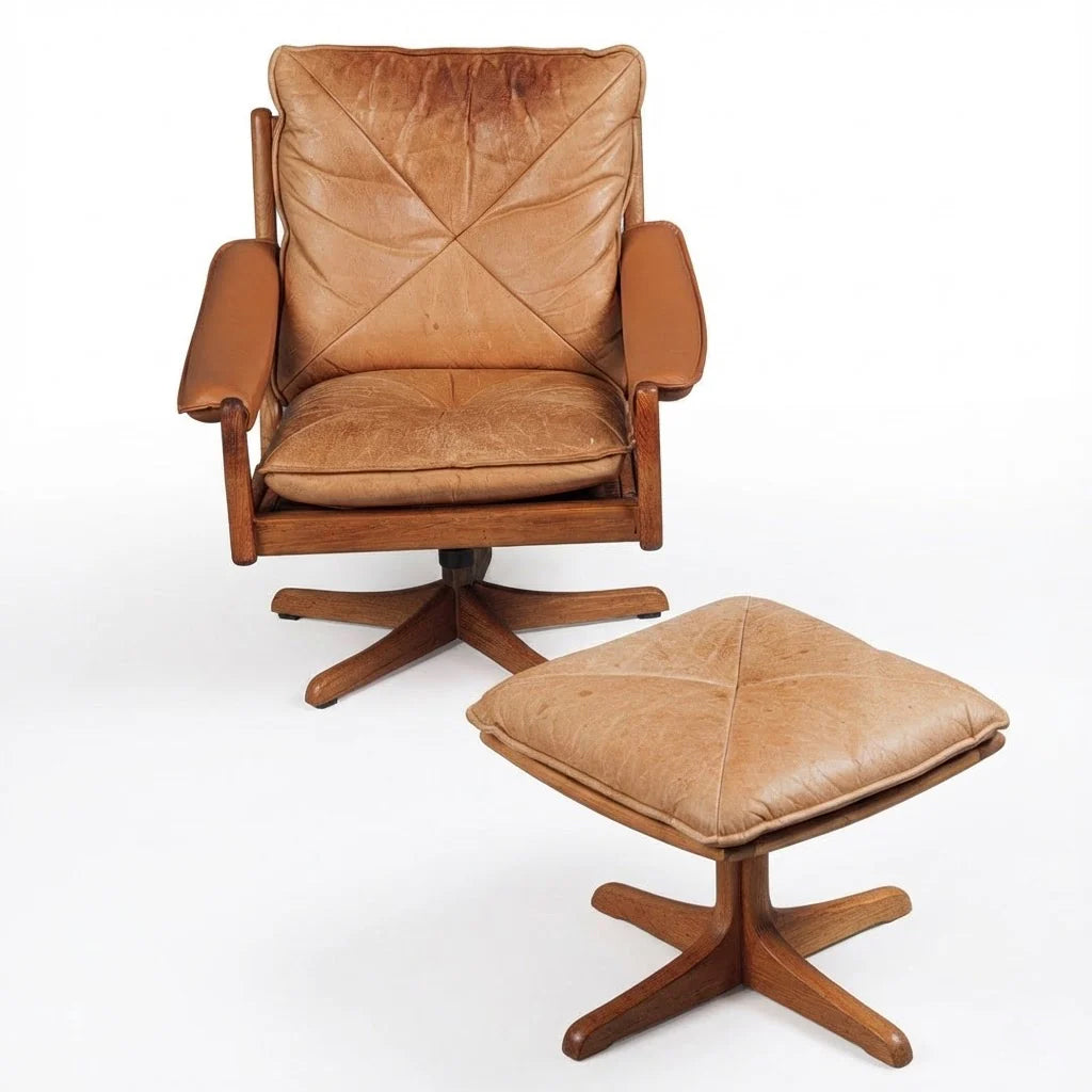 This elegant armchair and footstool set, an original Søda Galvano design from the 1970s , perfectly embodies the warmth and functionality of Scandinavian design from that era. An iconic piece for lovers of late mid-century modern and furniture with a story.