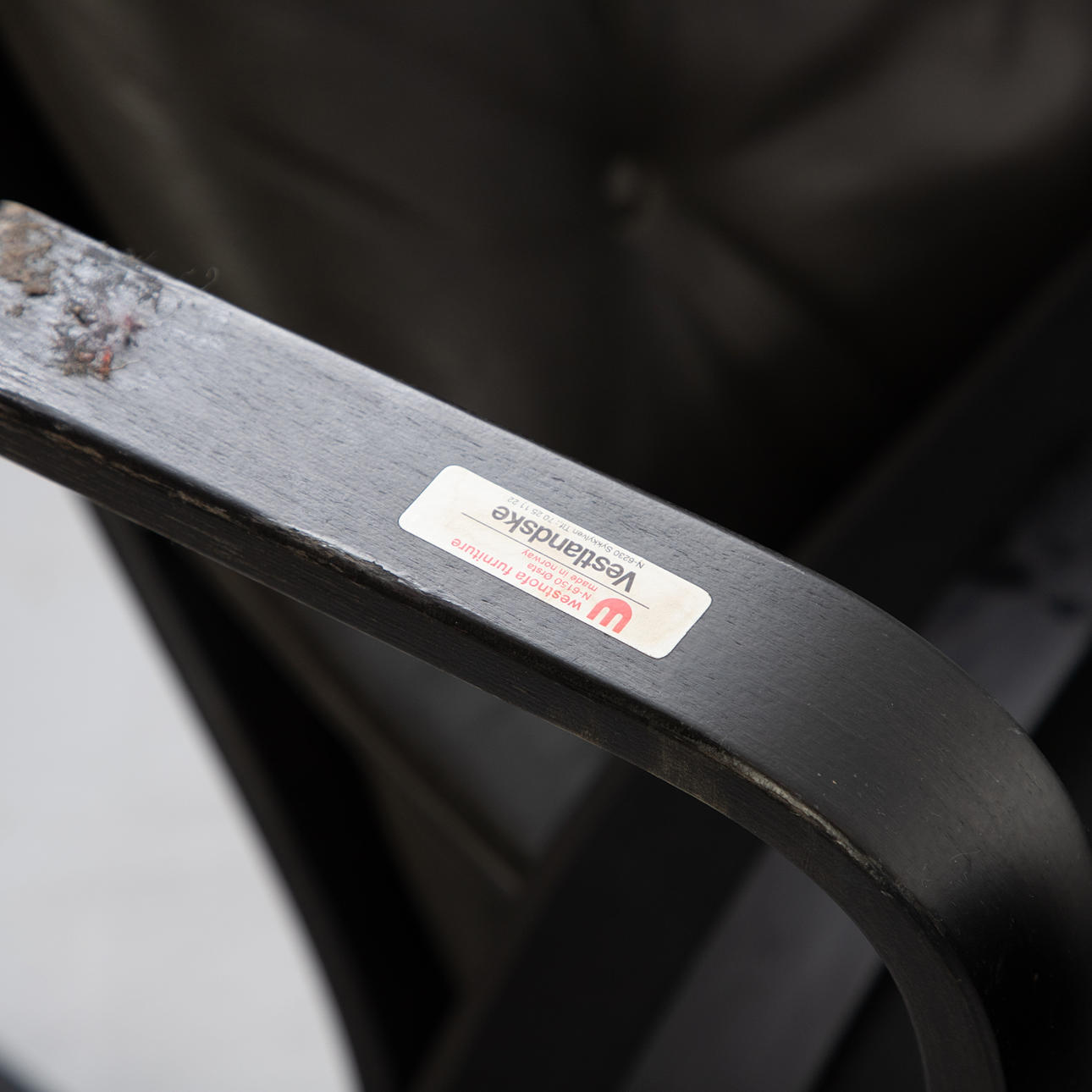 Original Siesta armchair in greyish black with ottoman , one of the most emblematic pieces of Mid-century Scandinavian design . Its lightweight structure, the balance between comfort and aesthetics, and its recognizable silhouette make it a must-have for lovers of Nordic design and spaces with character.