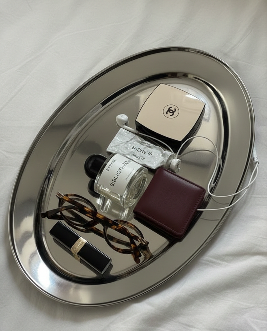 Bandeja de 30 cm elaborada en acero inoxidable con acabado espejo.