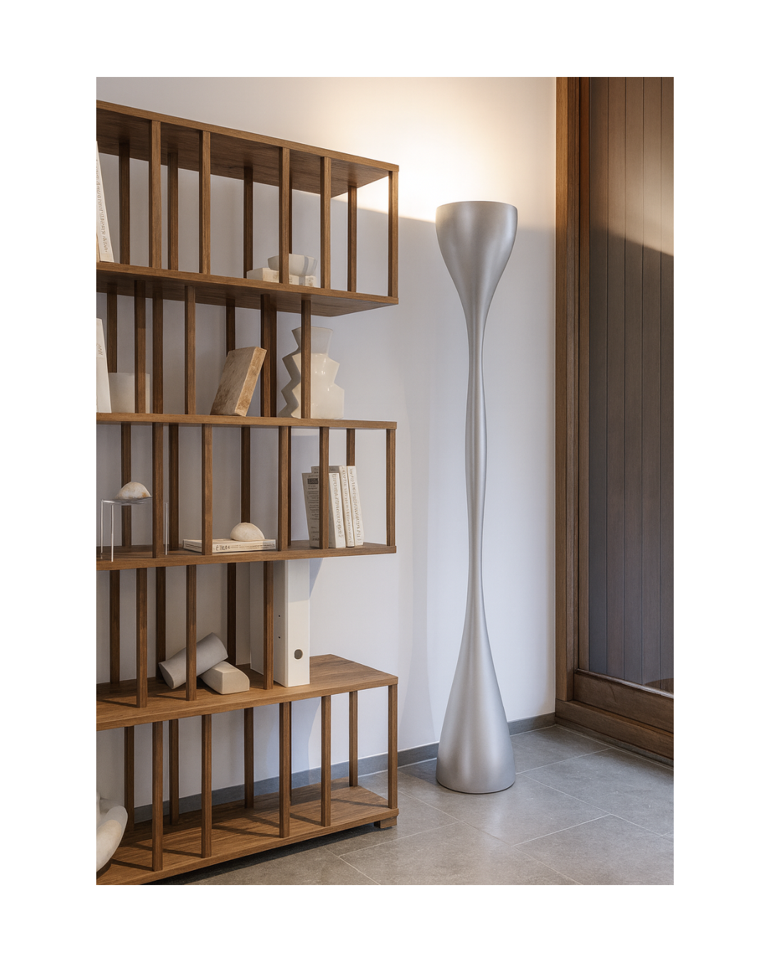 Lámpara de pie Jazz, por Diego Fortunato en acabado plata mate.