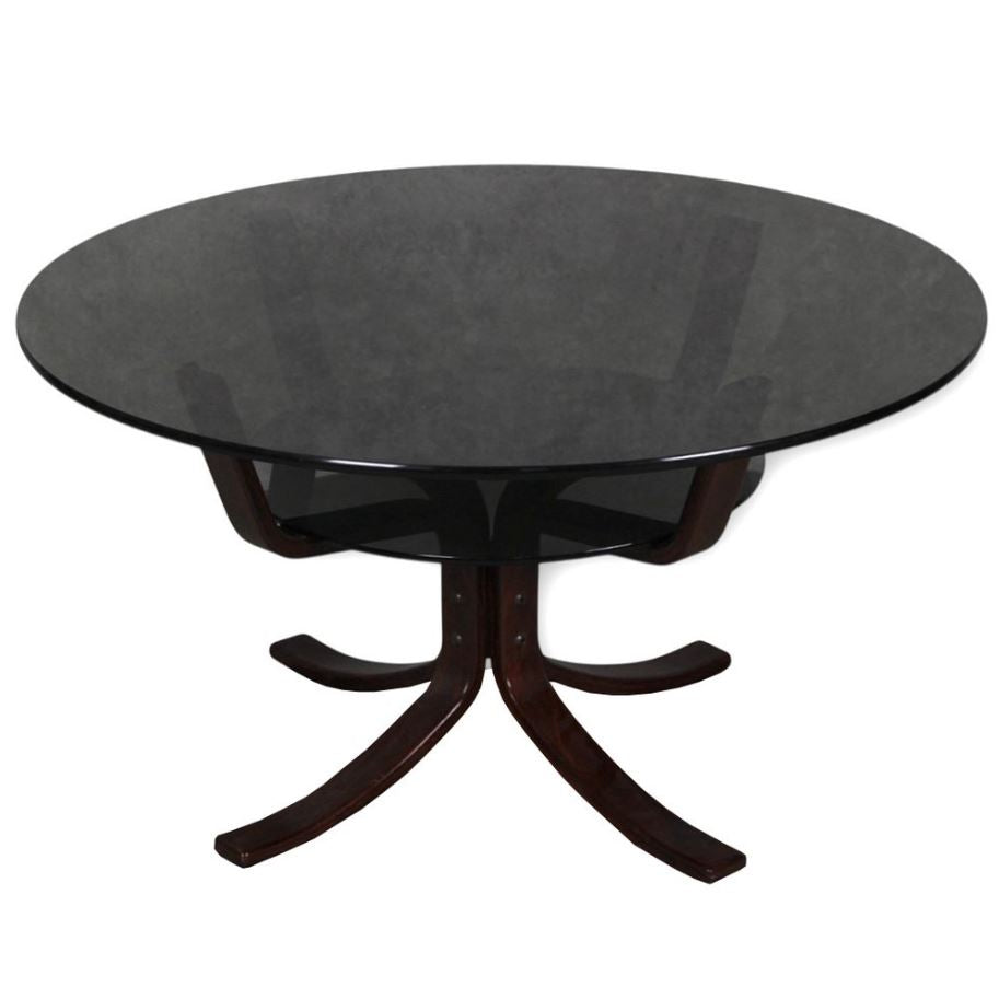 Diseñada por el reconocido arquitecto noruego Sigurd Resell para la firma Vatne Møbler, esta mesa de centro Falcon es un icono del diseño escandinavo de los años 70. Su estructura escultural en madera curvada sostiene un sobre circular de cristal ahumado, aportando una estética ligera, elegante y atemporal.