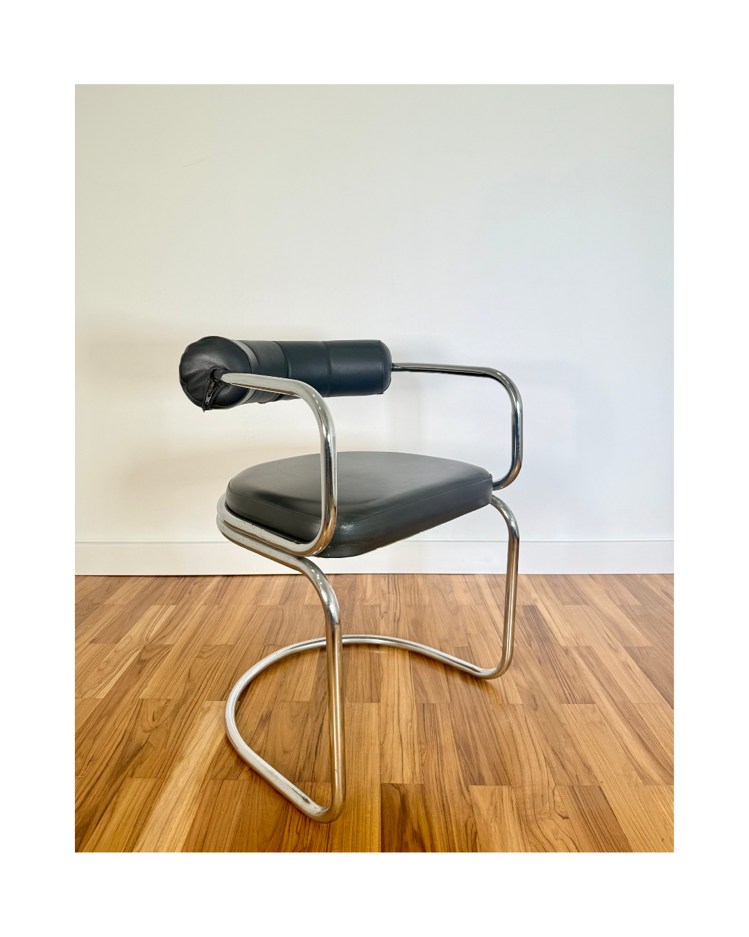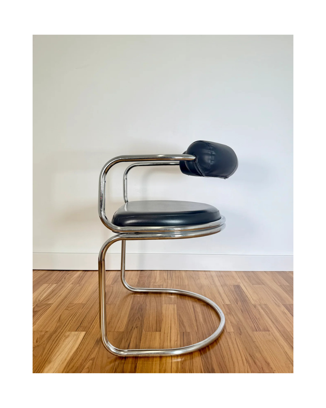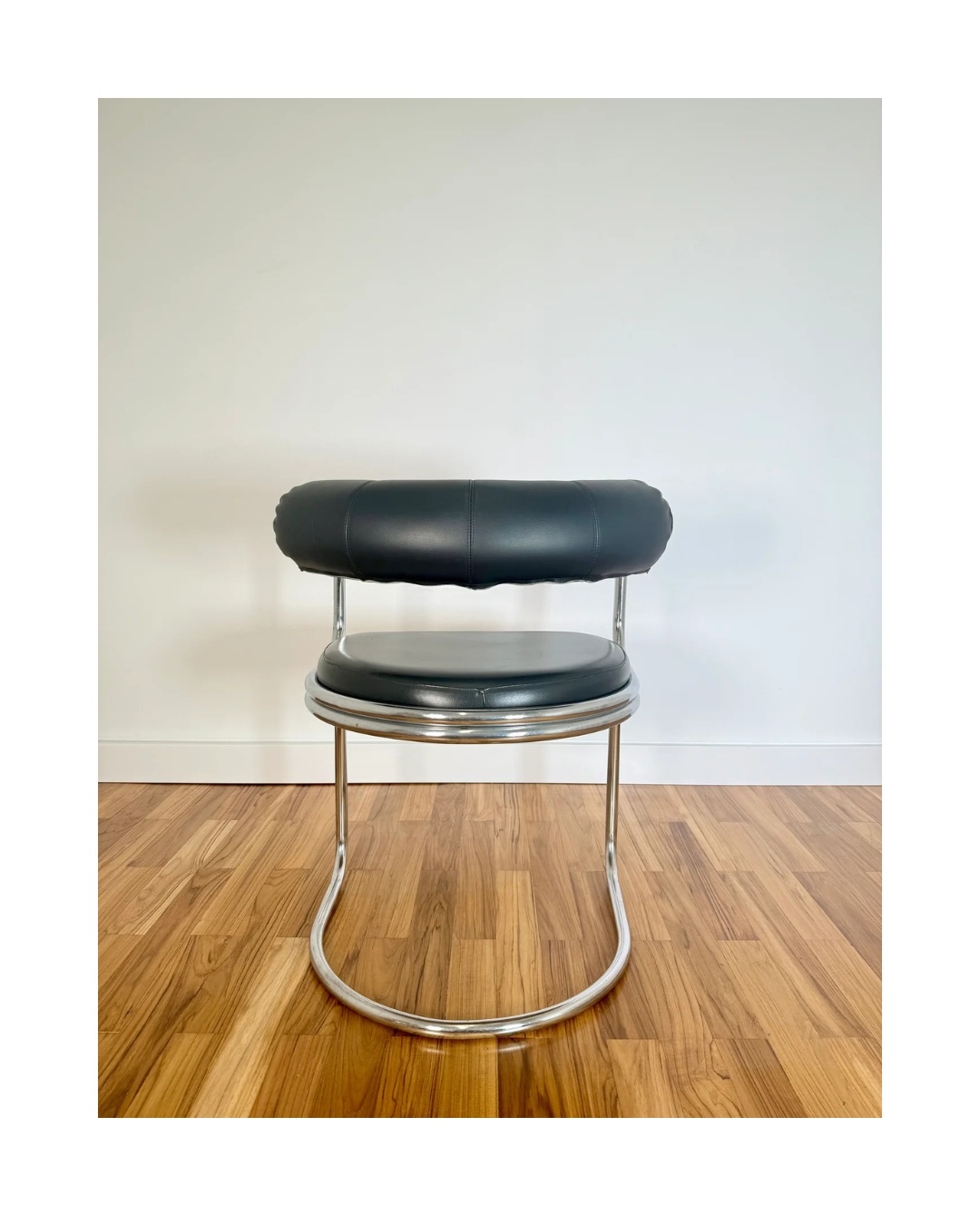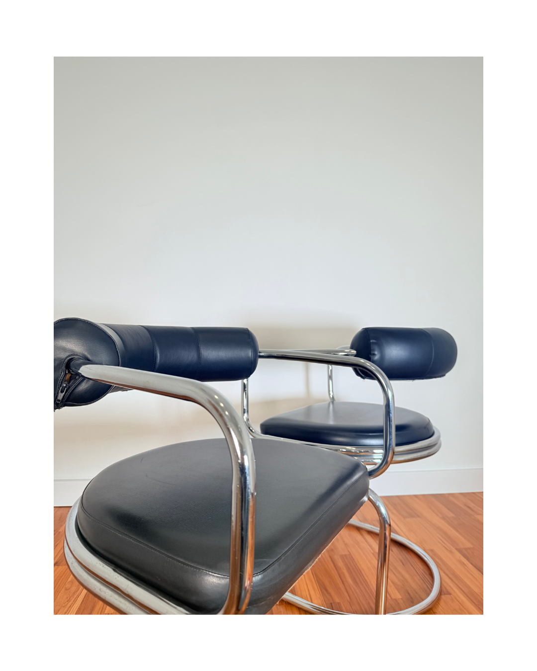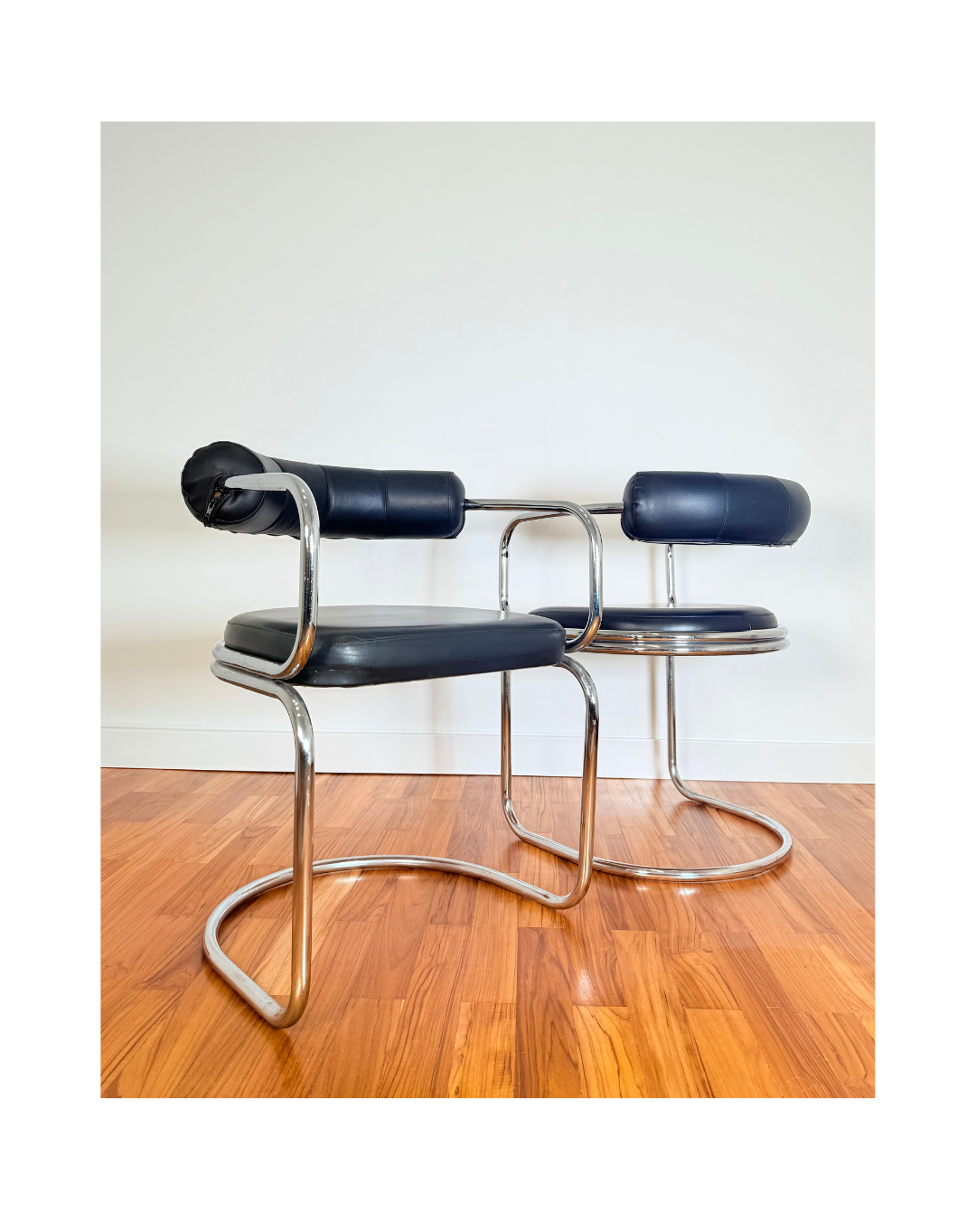 Conjunto formado por 2 sillas modelo Space Age tapizadas en polipiel con estructura tubular cromada