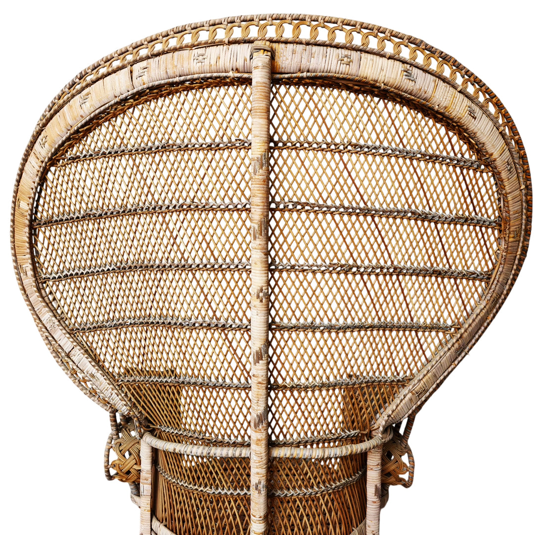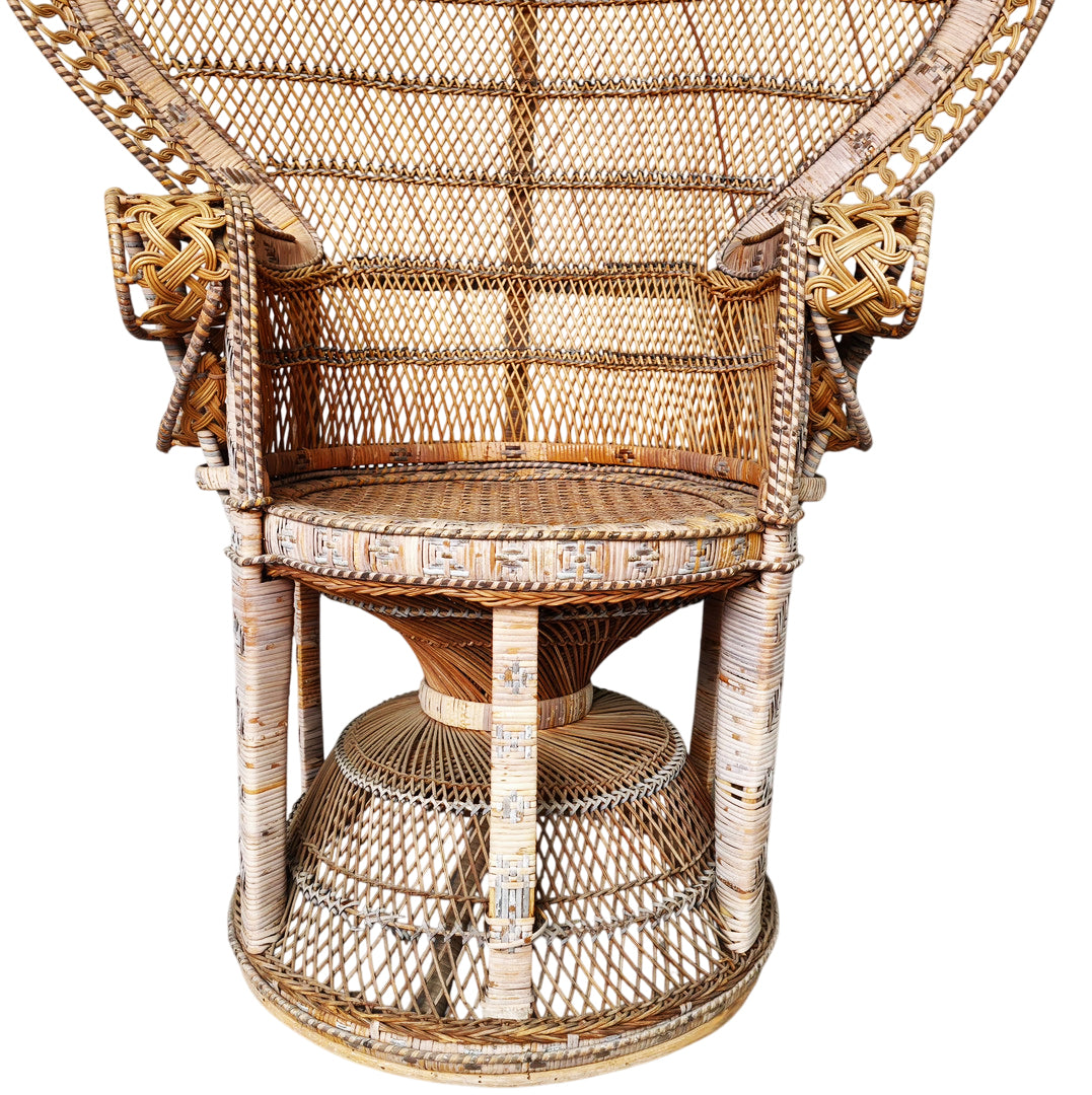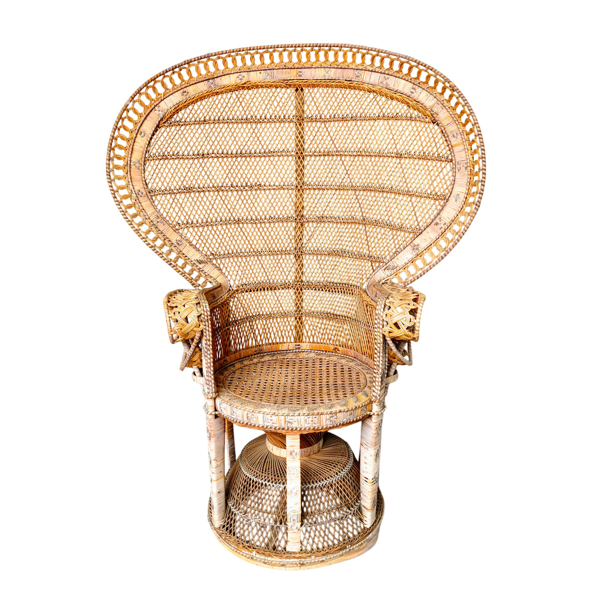 Icónico sillón pavo real "Emmanuelle " diseñado por Trio Noordwolde en 1970. Hecha a mano en material de ratán. El ratán está en buen estado con signos de desgaste por el paso del tiempo . Una gran pieza para la decoración boho de mediados de siglo.
