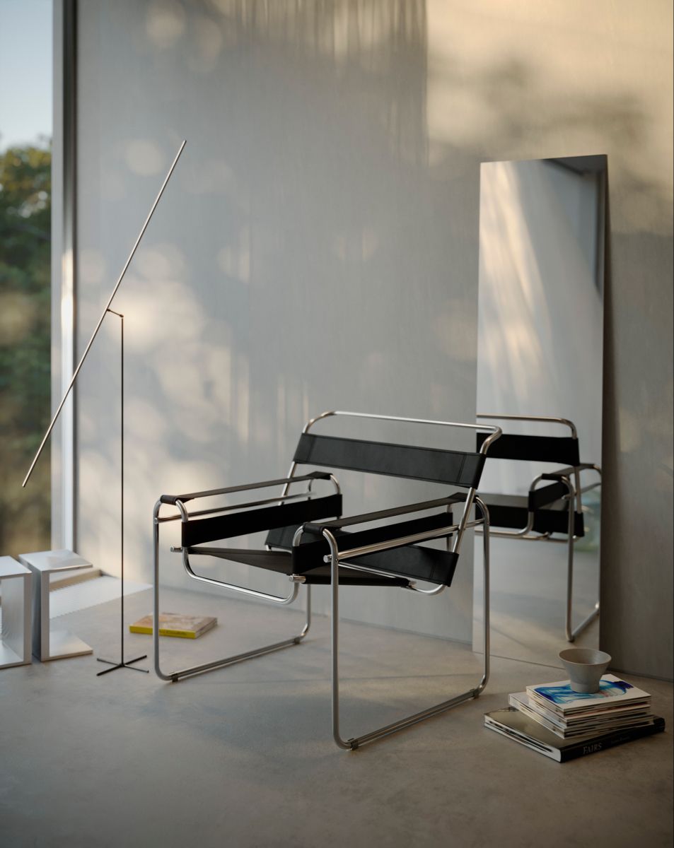 Sillón original Wassily de Knoll, diseñada por Marcel Breuer. Estructura en acero cromado y tapizado en piel de vacuno.